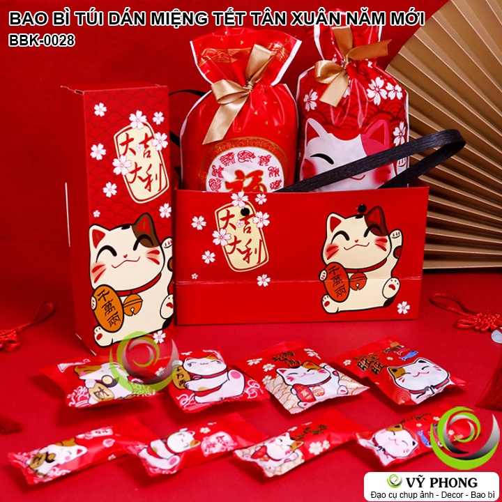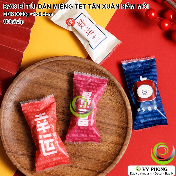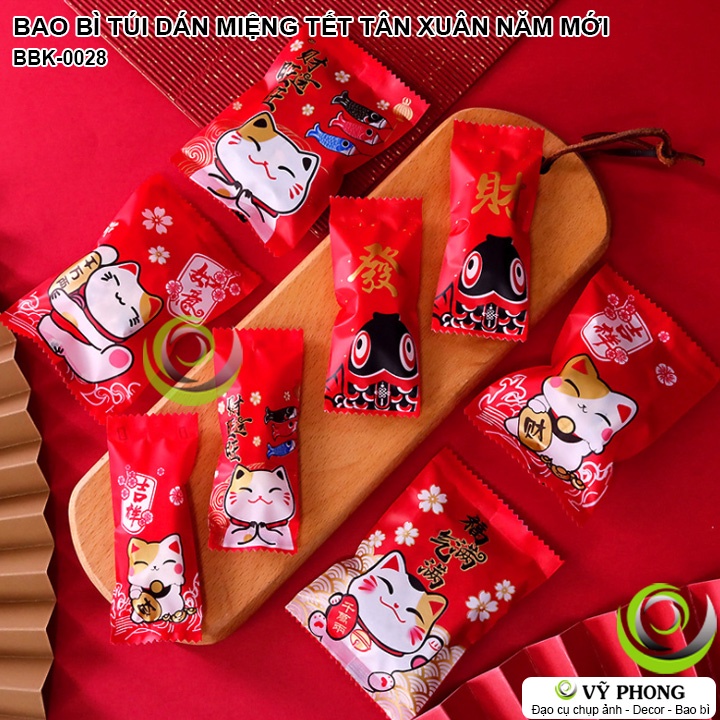 BAO BÌ TÚI NHỰA HÀN MIỆNG ĐỰNG BÁNH KẸO MÀU ĐỎ TẾT QUÀ NĂM MỚI TÂN XUÂN MAY MẮN BBK-0028
