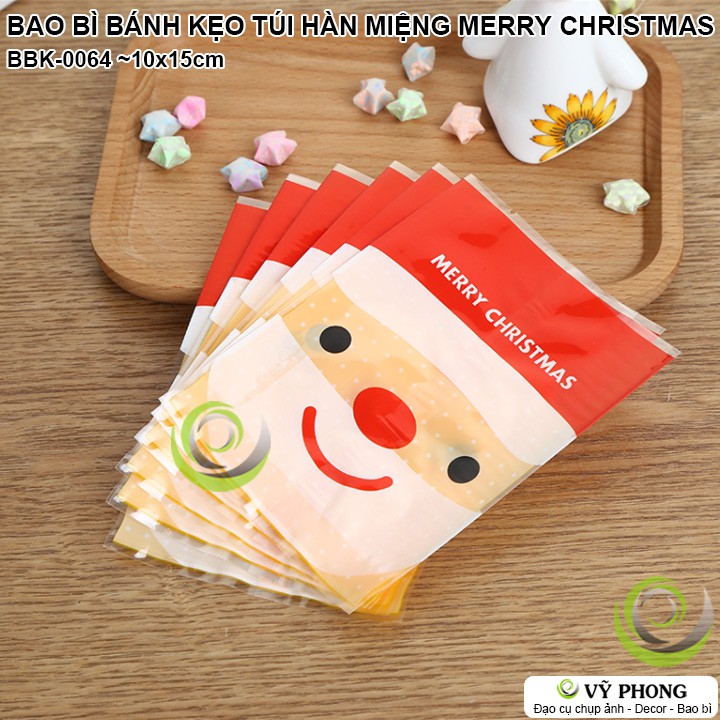 Tên sản phẩm : BAO BÌ TÚI NHỰA HÀN MIỆNG ĐỰNG BÁNH KẸO HÌNH ỒNG GIÀ NOEL MERRY CHRISTMASMã sản phẩm : BBK-0064