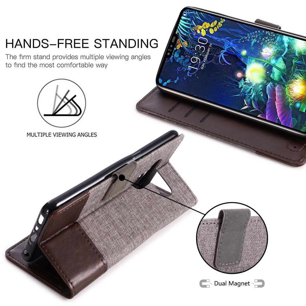 Giới thiệu Bao da canvas kèm ngăn đựng tiền thời trang cho điện thoại LG V20 / V30 / V35 ThinQ / V40 ThinQ / V50 / K40