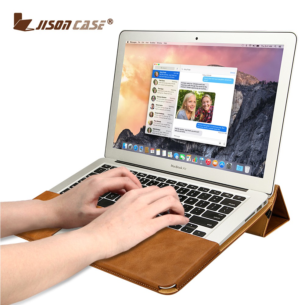 - Thiết kế bao da Jisoncase thật tiện dụng, như một cuốn sổ da cao cấp, khi dùng có thể mở ra dùng luôn, hoặc có thể cuộn thành đế đỡ macbook của bạn nâng cao