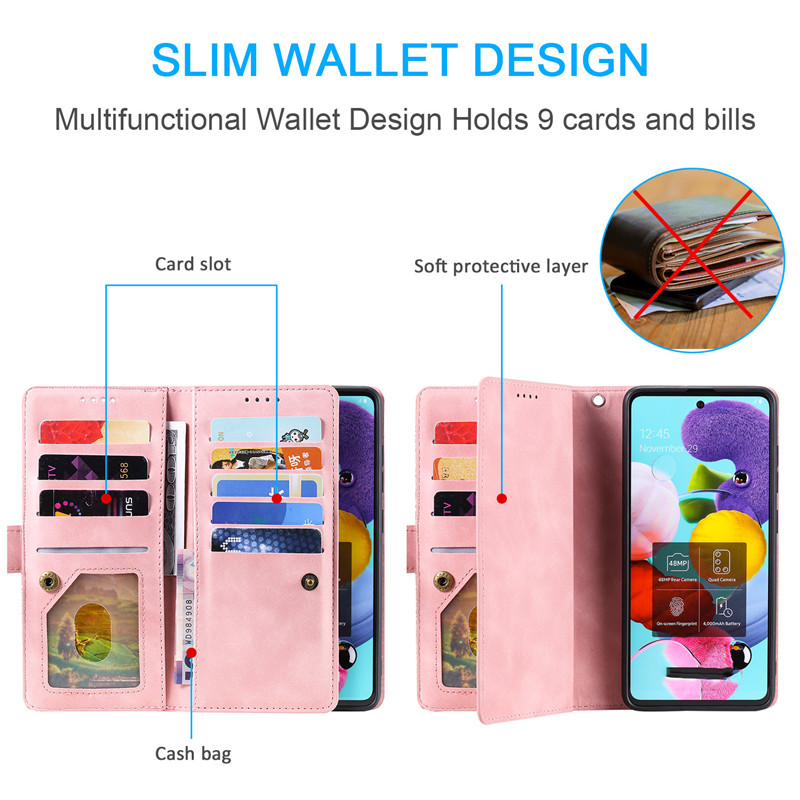 💖 [Kiểu dáng]: Bao da điện thoại thời trang kiểu ví có 9 ngăn đựng thẻ thiết kế có dây kéo