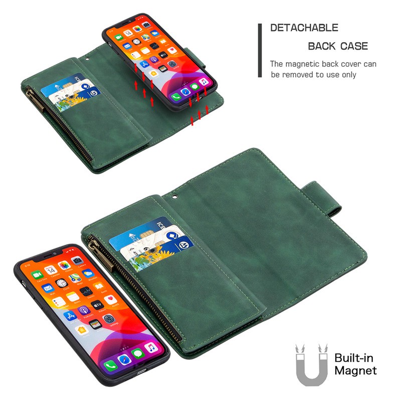 Điện Thoại & Phụ Kiện > Phụ kiện > Túi đựng điện thoại || Bao da điện thoại dạng ví gập có ngăn đựng thẻ kèm khóa kéo cho iPhone 11 Pro Max X XR XS Max SE2 2020 SE2 2020Còn hàng