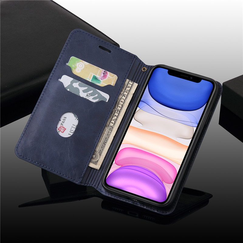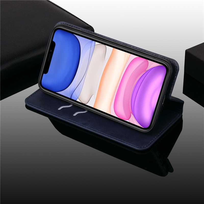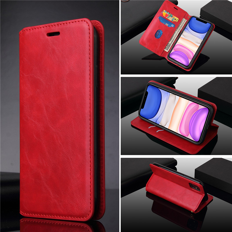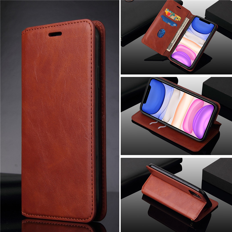 💖[style]: Business Magnetic attraction Crazy Horse pattern Flap Supportable Wallet Card slot Mobile phone case leather case
