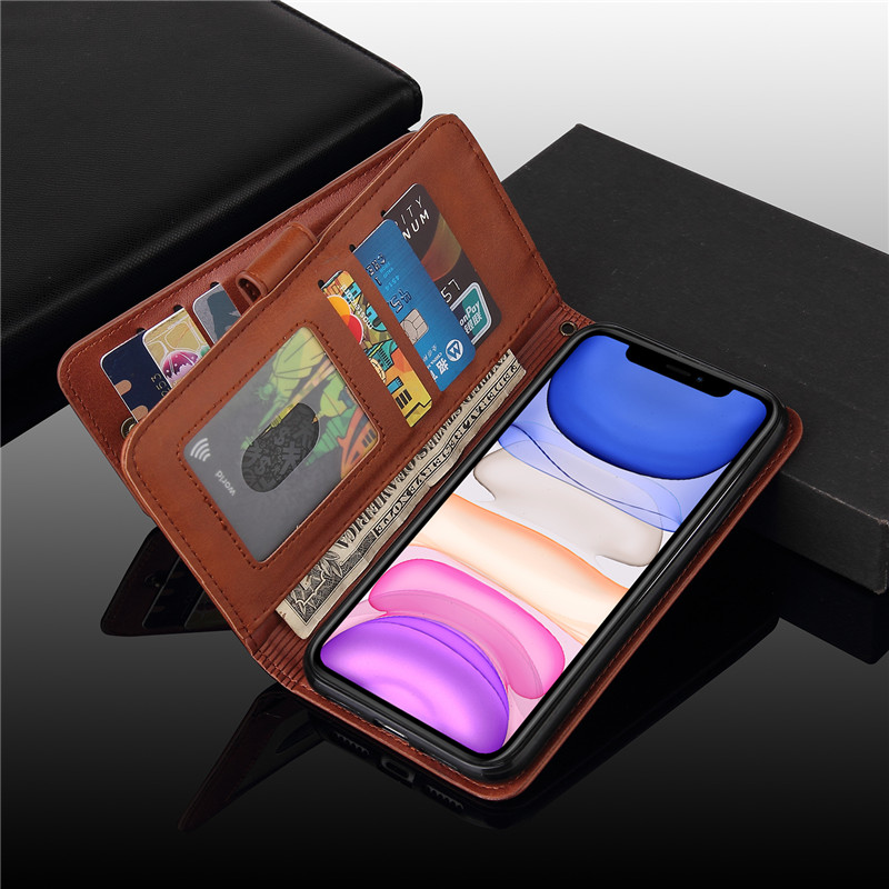 Giới thiệu Bao da điện thoại dạng ví nắp lật 9 ngăn đựng thẻ có dây kéo và dây đeo thời trang cho IPhone 12 IPhone 11 Pro MAX