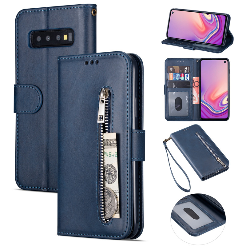 Điện Thoại & Phụ Kiện > Phụ kiện > Túi đựng điện thoại || Bao da điện thoại mềm dạng ví nắp lật có khóa kéo phối dây đeo cho Samsung A7 A750 A6 A5 PlusCòn hàng