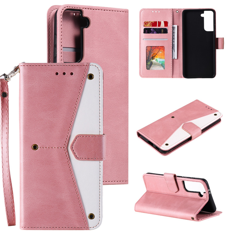 💖[style]: Fashion Color matching Flap Insert card Supportable Buckles Wallet Hand rope Mobile phone case leather case