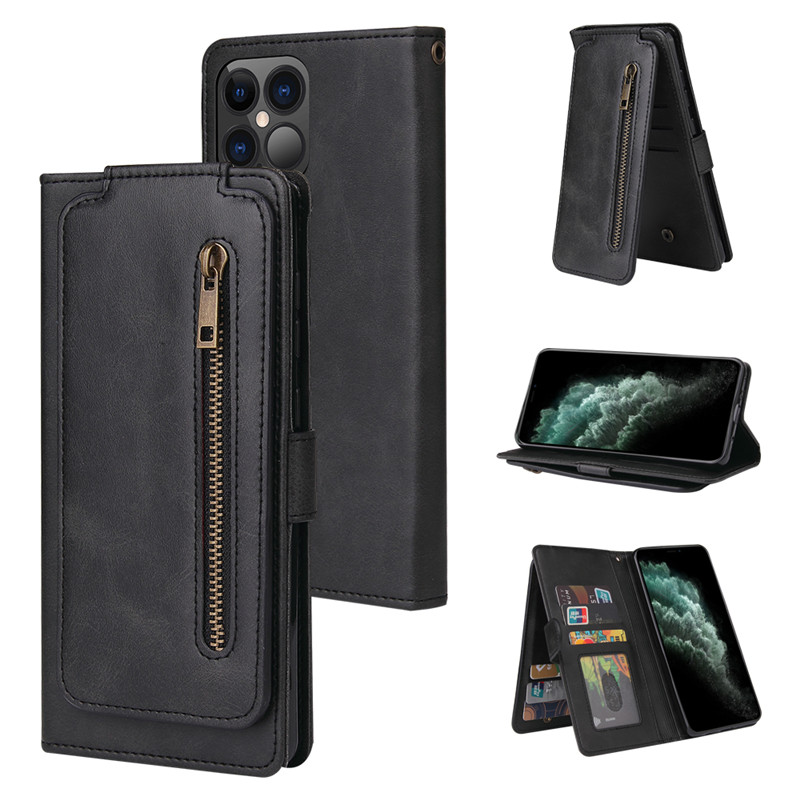 ✨ Product style: fashion 9Card position Flap zipper Insert card Standing Wallet style Hand rope Mobile phone case leather case