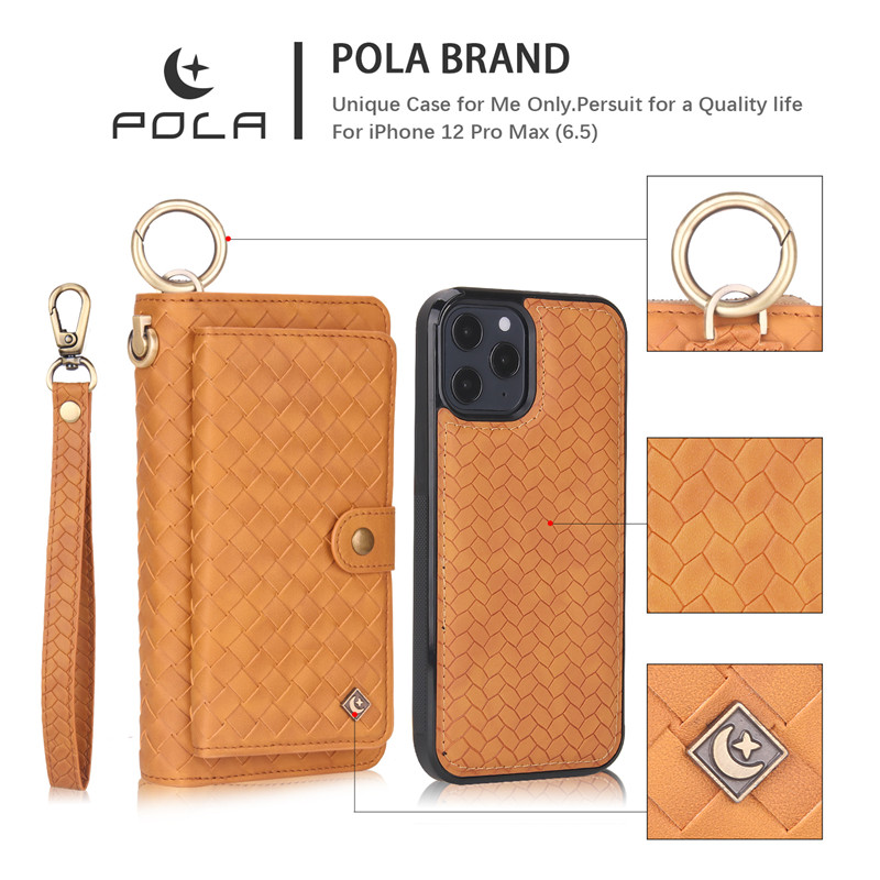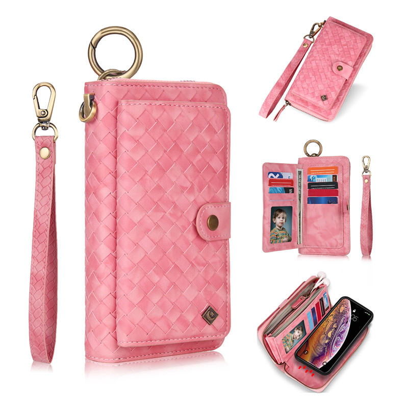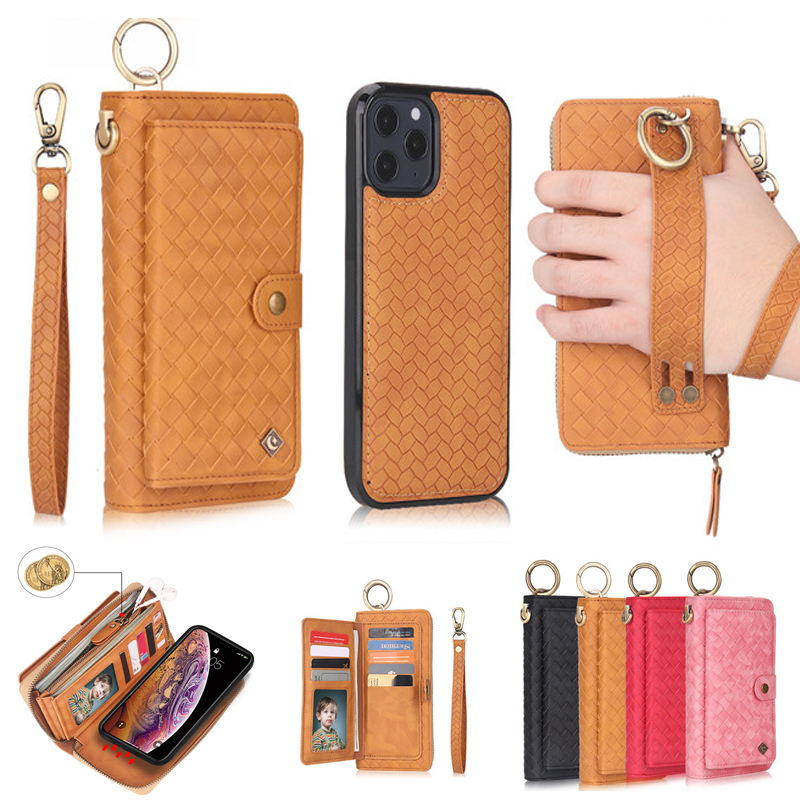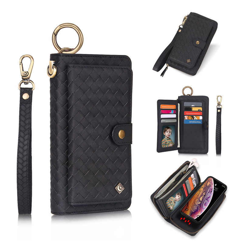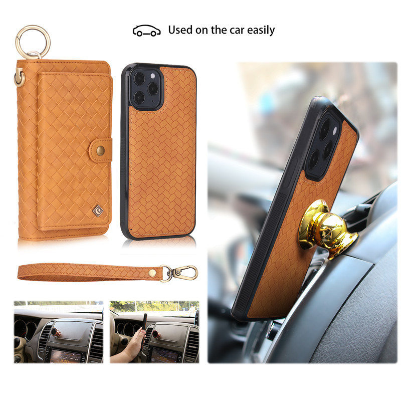 💖 [Phong cách]: Bao da điện thoại đan sợi dạng ví có khóa kéo và ngăn đựng thẻ tháo rời được đa năng kiêm giá đỡ gắn trên giá đỡ xe hơi thời trang