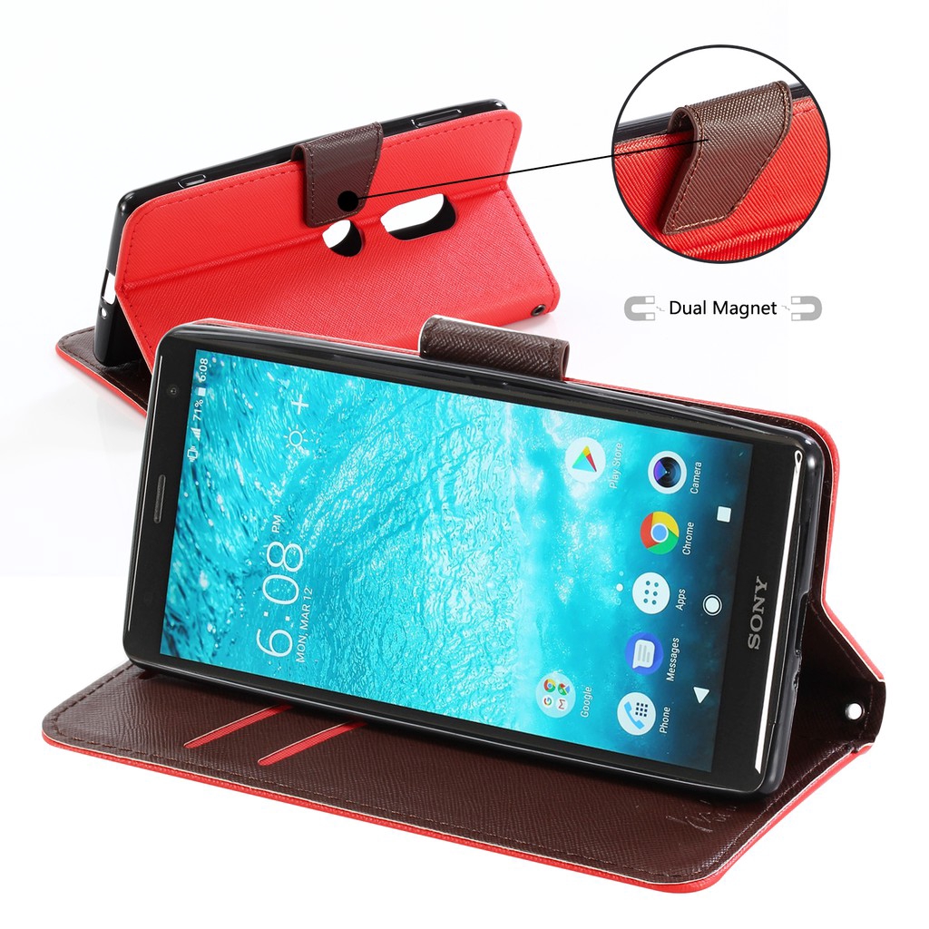 Bao da điện thoại nắp gập phối hai tông màu thời trang tích hợp ngăn đựng thẻ cho Sony Xperia XZ1 / XZ2 / XZ3 / L1 / L3