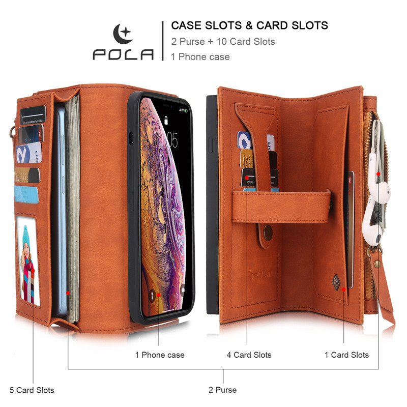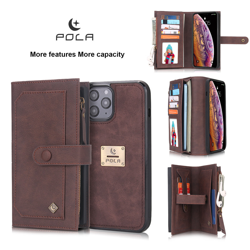 Giới thiệu Bao da điện thoại nắp lật khóa nam châm phối khóa kéo kèm ngăn đựng thẻ cho IPhone 12 11 Pro Max