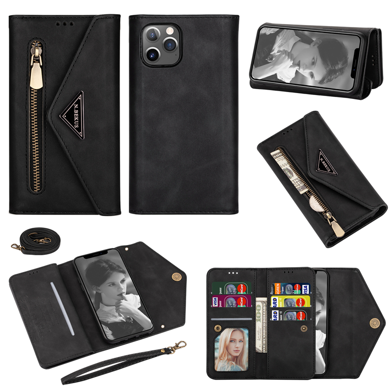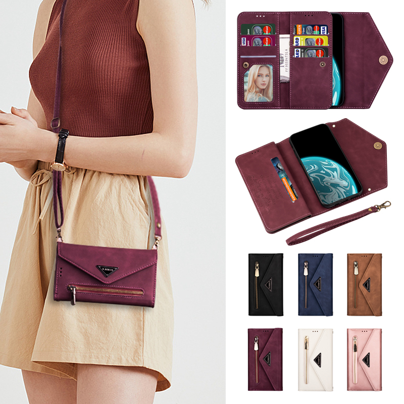 Điện Thoại & Phụ Kiện > Phụ kiện > Túi đựng điện thoại || Bao da điện thoại nắp lật mềm kiêm ví khóa kéo gắn dây đeo cho Samsung A91/S10 Lite Note10 Lite/A81 A71 A51 A41Còn hàng
