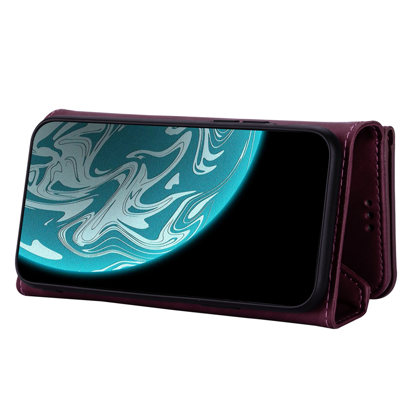 Magnetic Bracket Retro Flip Zipper Wallet Cover Casing
