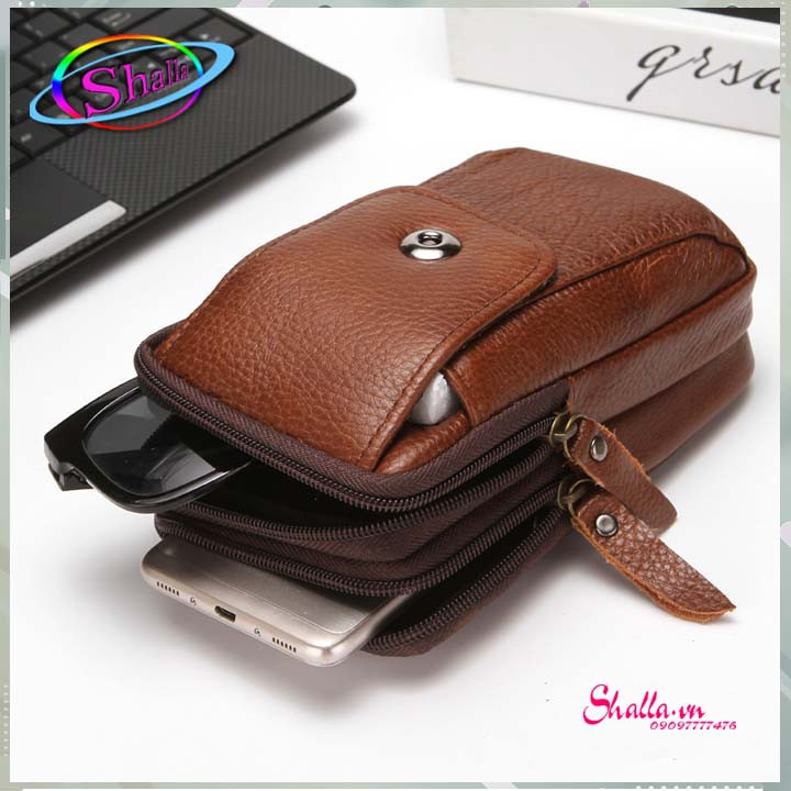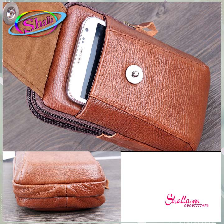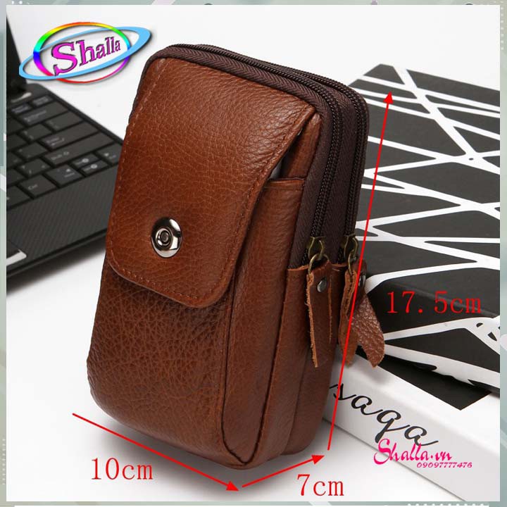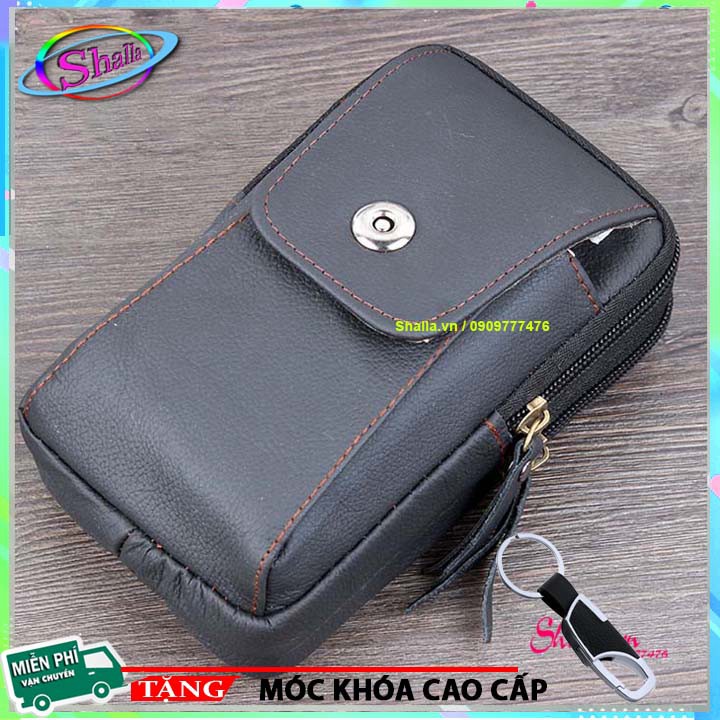 Điện Thoại & Phụ Kiện > Phụ kiện > Túi đựng điện thoại || Bao da đựng điện thoại đeo hông nút hít hai lớp 6.3 inch Shalla Tặng móc khóa cao cấpCòn hàng