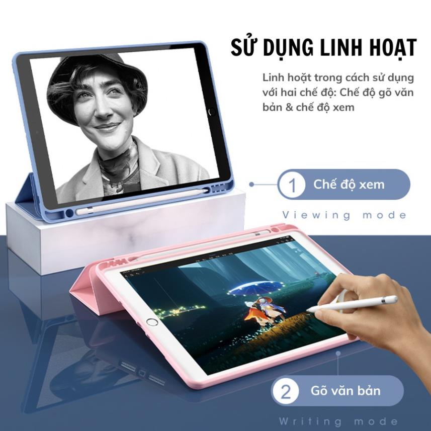 Bao Da iPad, Ốp iPad Có Khay Đựng Bút Tích Hợp Màu Pastel