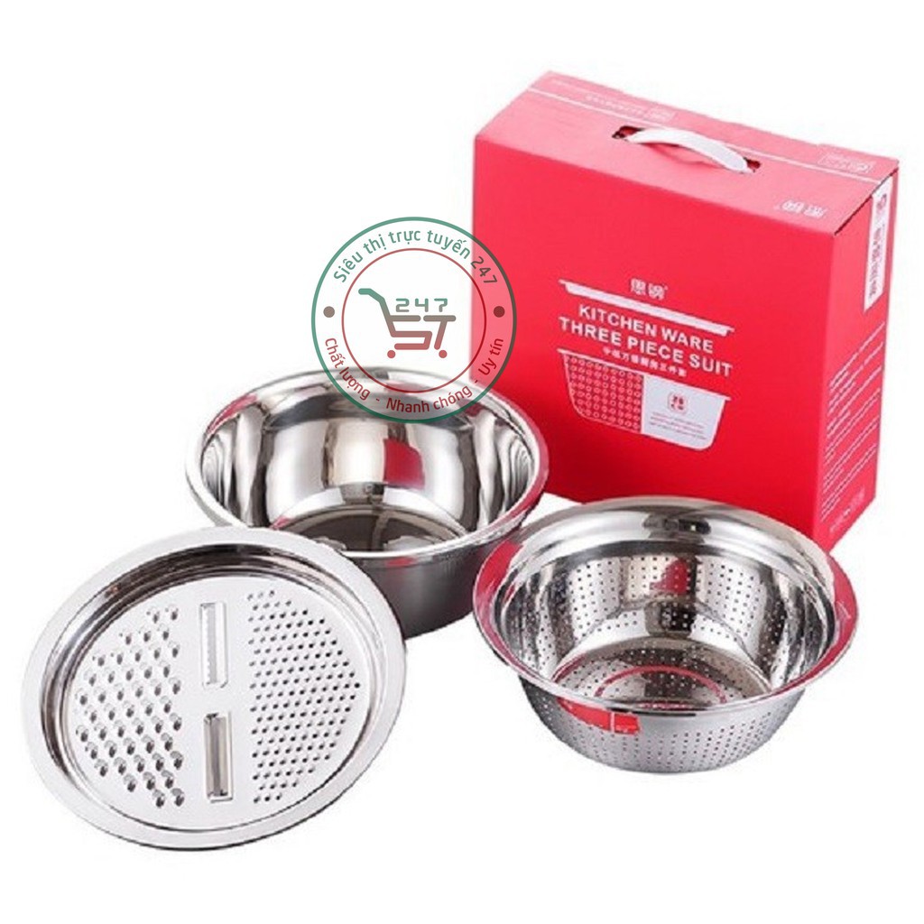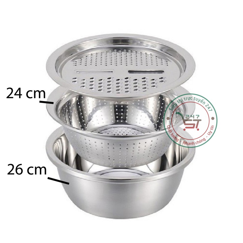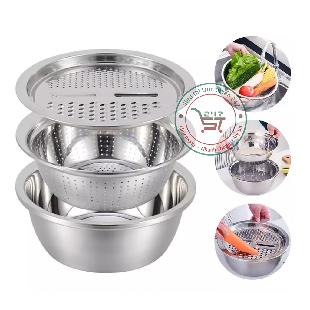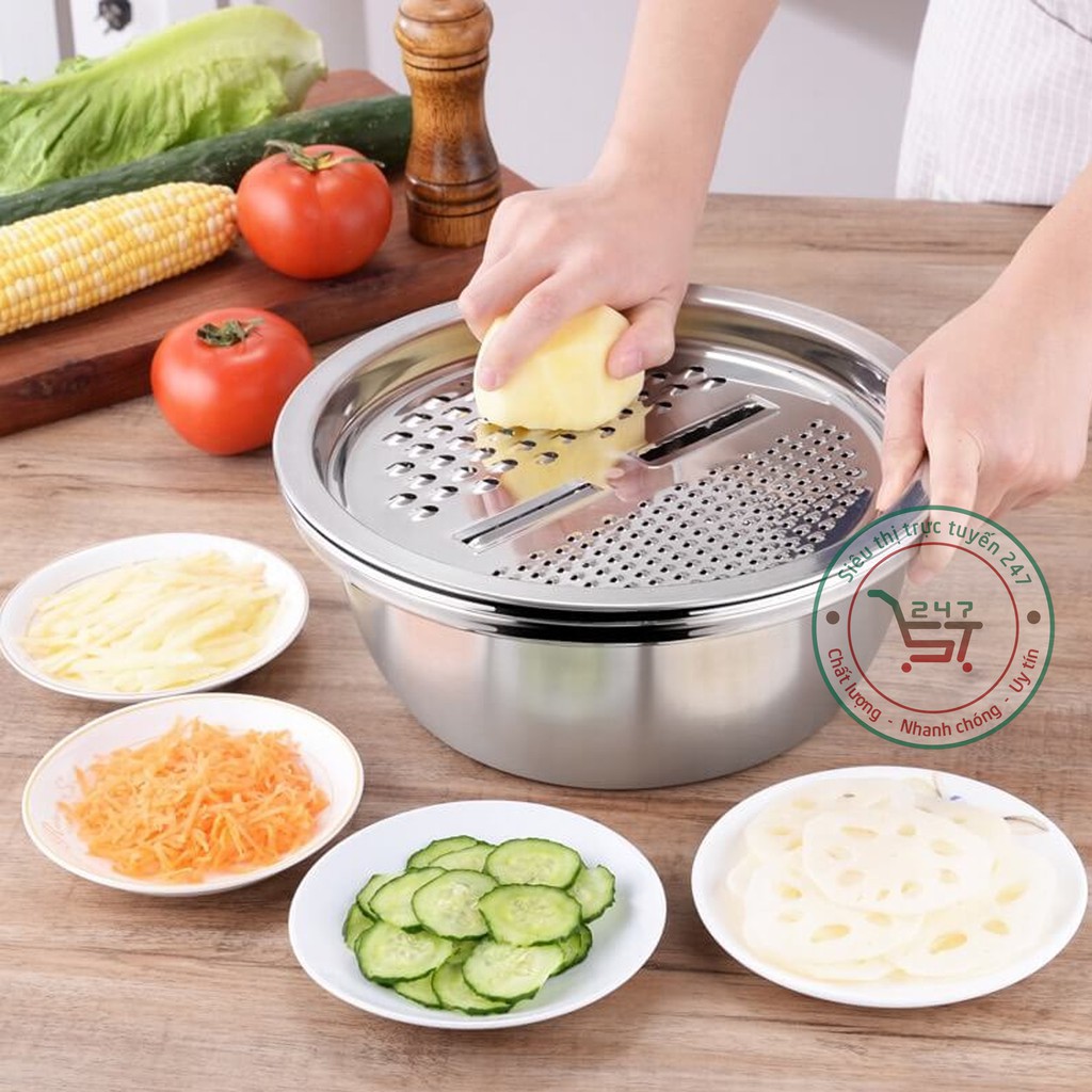 Nhà cửa & Đời sống > Dụng cụ nhà bếp > Bàn nạo, dụng cụ bào, cắt || Bào đa năng có thau rổ bằng inox tiện dụngCòn hàng