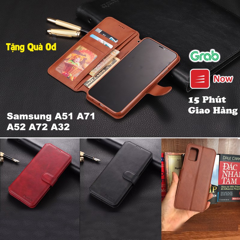 Bao da ốp lưng samsung A51 A71 A52 A72 A32 A31 A12 A02 A02s A03s A21 A21s kèm ví gập nắp da thật mềm mịn - azns
