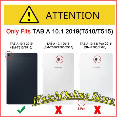 Bao da này chỉ phù hợp với phiên bản 2019 Samsung Galaxy Tab A 10.1 (2019), số mẫu mã chính xác trên máy tính bảng là SM-T510 / SM-T515