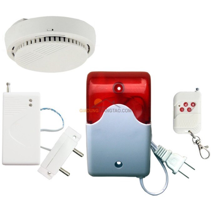 Bộ kit báo khói, báo tràn nước không dâyVới bộ kit này loa báo động được sử dụng như một bộ trung tâm, nó sẽ học lệnh để ghép nối với tay điều khiển giúp bạn chủ động điều khiển bật tắt báo động từ xa, nhấn báo động khẩn cấp để dọa trộm nếu muốn. Có thể học lệnh từ các cảm biến không dây phát sóng RF315 như: cảm biến chuyển động hồng ngoại, cảm biến của mở, cảm biến rung, cảm biến tràn nước, cảm biến khói, cảm biến mở cửa cuốn...( học được tối đa 20 cảm biến ) từ đó tùy vào cảm biến ghép nối mà loa sẽ phát ra báo động khi xảy ra sự cố giúp bảo vệ an toàn cho ngôi nhà của bạn.