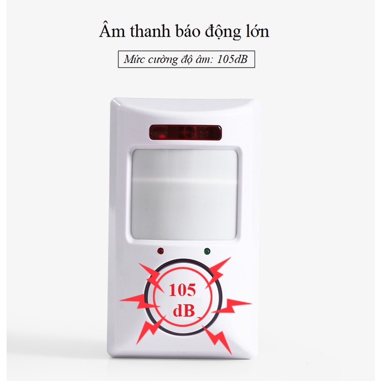 Báo động chống trộm cảm biến hồng ngoại có điều khiển từ xa V3 hoạt động theo cơ chế cảm biến hồng ngoại dùng để phát hiện sự di chuyển của các vật thể có nhiệt độ lớn hơn nhiệt độ môi trường. Với góc quét rộng, tầm quét xa và còi hú báo động to khiến cho tên trộm hoảng sợ phải bỏ chạy hay để mọi người xung quanh biết được có người đột nhập tiến đến bắt trộm.THÔNG SỐ KỸ THUẬT: