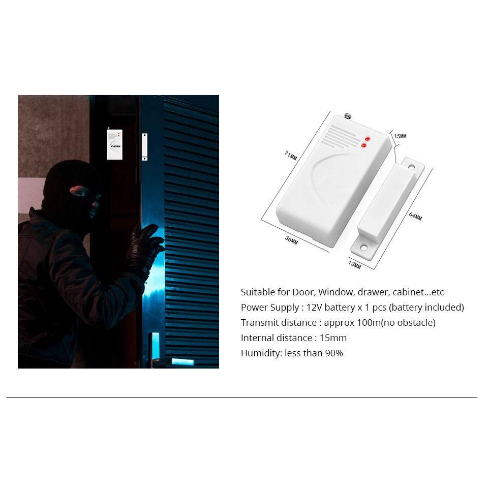 • Cảm biến từ không dây siêu nhạy dùng cho cửa sổ và cửa ra vào: Tương thích với còi thiết kế đặc biệt cho các cửa sổ kéo đẩy và cửa lùa kính với độ nhạy cảm biến siêu mỏng chỉ 8mm. Khi có người đột nhập, cửa hé mở, còi báo động trung tâm sẽ phát ra âm thanh báo động lập tức.