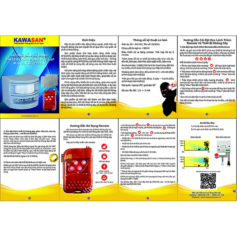 Báo động độc lập, báo khách, báo trộm tại chỗ có 2 remote điều khiển từ xa tắt mở kawasan I227B-2R