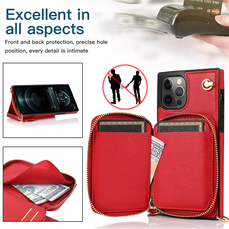 ✨ Product style: up to date lFashion Large cross zipper bag Insert card Wallet Support Lanyard Back cover of mobile phone case Protective shell