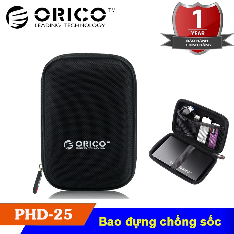 Hộp Đựng Tai Nghe / Cáp Sạc / Pin Sạc Dự Phòng / Ổ Cứng ORICO PHD-25 với lớp chống sốc 2 lớp.Sử dụng được cho cả ổ gắn trong và gắn ngoài chuẩn 2.5".