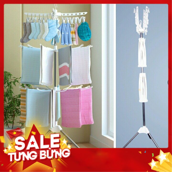 Cây sào phơi đồ inox thông minh gấp gọn đa năng 3 tầng, treo đồ cho trẻ em, bé sơ sinh⭐ Một dụng cụ rất cần thiết và hữu dụng vào mùa mua kéo dài và liên tục.