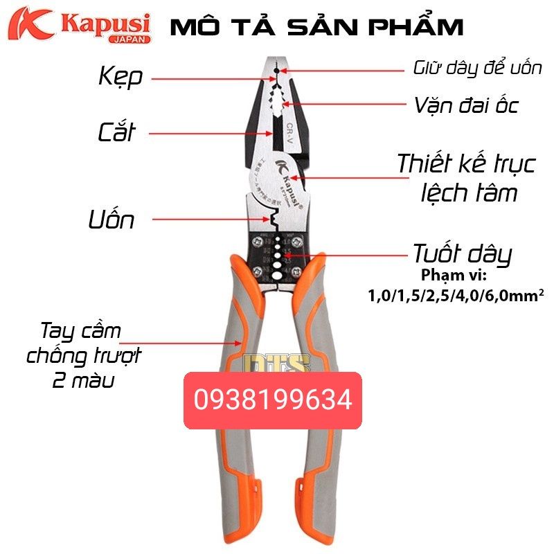 - Kìm đa năng thương hiệu Kapusi JAPAN là dụng cụ được thiết kế rất đa dụng, có thể sử dụng được nhiều chức năng chỉ trên cùng một sản phẩm.