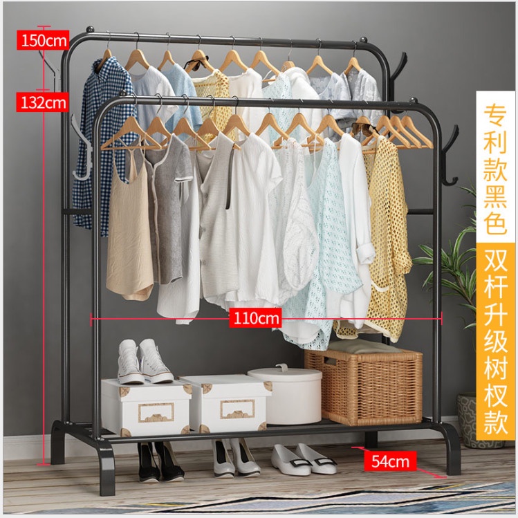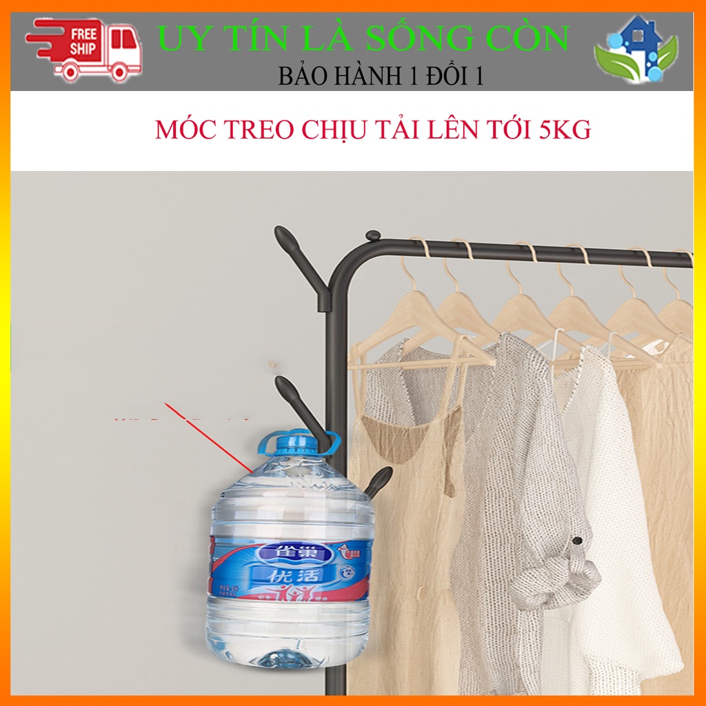 Gía treo quần áo thiết kế thêm 1 tầng có các thanh sắt ngang để đồ, ngoài việc treo quần áo còn có thể để được rất nhiều vật dụng lên tầng dưới của kệ áo như : Giày dép, túi sách, ba lô...
