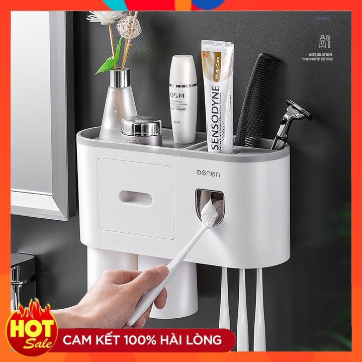 Giá Treo Bàn Chải Kem Đánh Răng Nhà Tắm OENON- Giá treo bàn trải đánh răng thiết kế thông minh tích hợp nhả kem đánh răng tự động