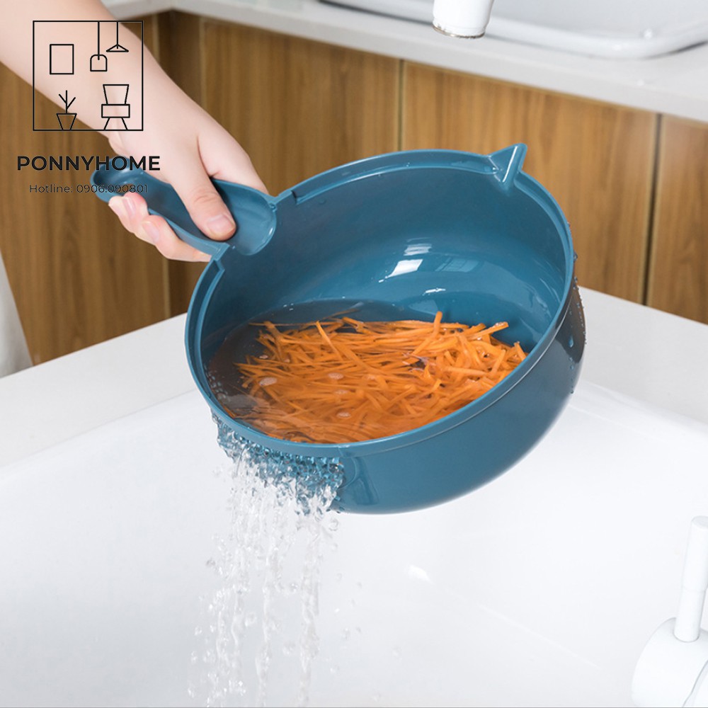 • Rổ thái rau củ đa năng với thiết kế xoay lồng 02 lớp rổ độc đáo giúp việc cắt thái và rửa rau củ, hoa quả trở nên dễ dàng hơn.