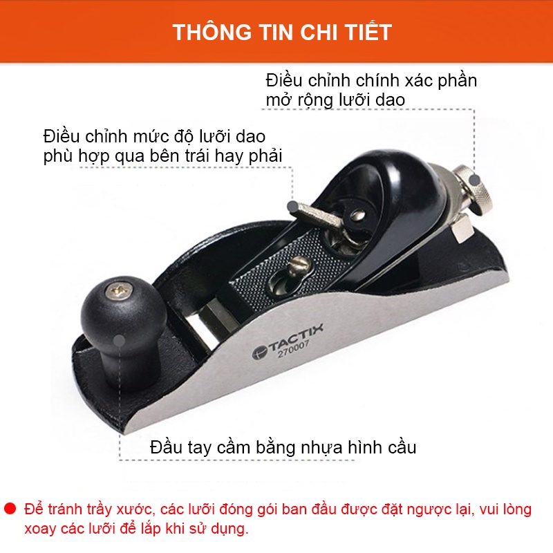 Nhà cửa & Đời sống > Dụng cụ & Thiết bị tiện ích > Dụng cụ > Cưa, máy cắt & máy mài || Bào gỗ cầm tay 180mm TACTIX 270007, bàn bào mini lưỡi bào 41mm-1,5 inch tính ứng dụng cao, làm đồ DIYCòn hàng