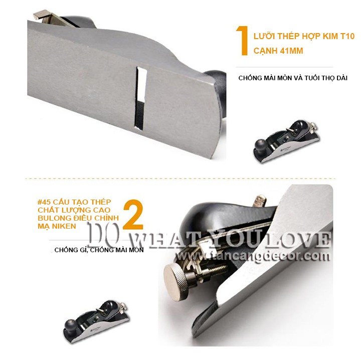 - Phần lưỡi bào thì làm bằng chất liệu thép hợp kim T10 nên có độ bền cao, không bị mài mòn và rỉ sét theo thời gian sử dụng. Điểm nổi bật của sản phẩm này là có kiểu dáng nhỏ gọn, cầm nắm sử dụng liên tục khá là thoải mái và dễ dàng mang theo khi có việc cần dùng tới. Bào gỗ cầm tay có tính ứng dụng cao với các thợ mộc, ngành chế biến gỗ, đặc biệt là trong ngành chế biến đồ mỹ nghệ từ thông thường đến cao cấp.
