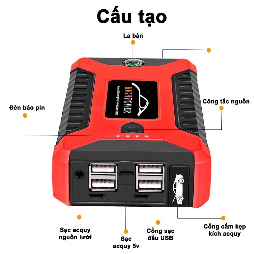 Giới thiệu bộ sản phẩm và quà tặng: Pin sạc dự phòng kiêm kích nổ ô tô giá rẻ 69800mAh (Đỏ) + Tặng bộ 10 đôi đũa tre Cao PhongBộ kích nổ ô tô kiêm sạc pin dự phòng là giải pháp hỗ trợ cho bạn trong những trường hợp xe ô tô chết máy, điện thoại, laptop hết pin khi đang đi trên đường.Bạn sẽ làm gì khi chiếc xe của bạn đột nhiên hết bình không thể khởi động? Bạn cần mua một bình ắc quy mới, nhờ xe khác tới kích nổ ô tô hay là chờ đợi và gọi cứu hộ?