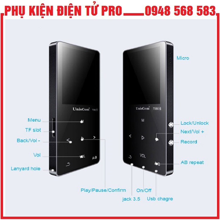 Giới thiệu [Mã 155Elsale Giảm 7% Đơn 300K] [Bảo Hành 1 Đổi 1] Máy Nghe Nhạc Lossless Bluetooth Uniscom T580 8Gb