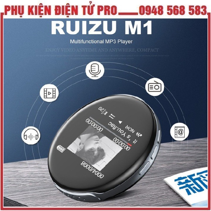 MÁY NGHE NHẠC MINI BLUETOOTH RUIZU M1 BỘ NHỚ TRONG 8GBMÁY NGHE NHẠC RUIZU M1 KẾT NỔI BLUETOOTH. MÁY NGHE NHẠC RUIZU M1 DẠNG TRÒN, KÈM LOA NGOÀI, CÓ THỂ NGHE NHẠC, GHI ÂM, EBOOK, TỪ ĐIỂN. MÀN HÌNH HIỂN THỊ 1.4 INCHES KHÁ BÉ TUY NHIÊN VẪN ĐỦ ĐỂ NGƯỜI DÙNG SỬ DỤNG THAO TÁC.