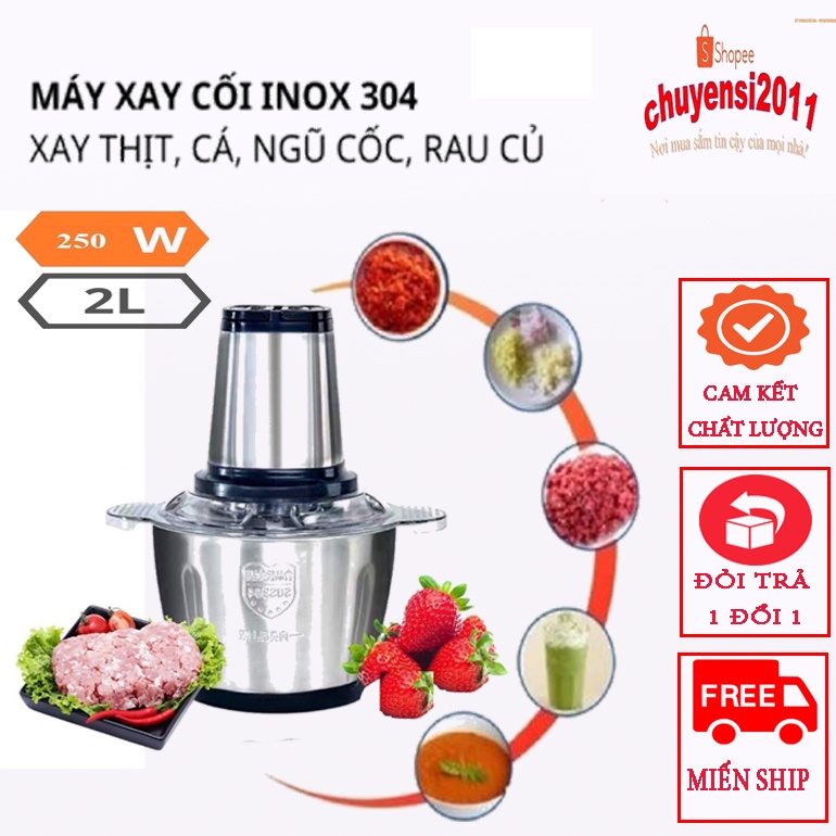 Thiết Bị Điện Gia Dụng > Đồ gia dụng nhà bếp > Máy chế biến thực phẩm & Xay thịt || BẢO HÀNH 1 ĐỔI 1 Máy xay thịt, máy xay đa năng, công suất 250W, cối inox304, 4 lưỡi dao sắc bénCòn hàng