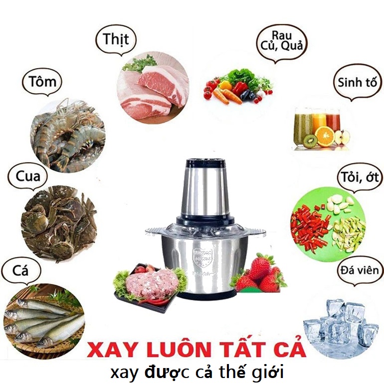 sản phẩm Máy xay thịt đa năng dùng cho gia đình, cối Inox 4 lưỡi dao, công suất 250W--------------------------------------