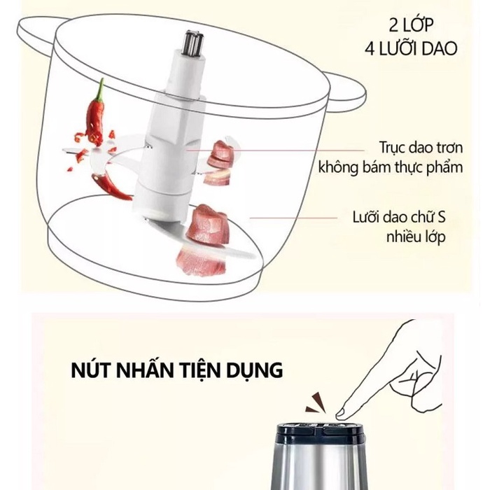 - Máy xay thịt hoạt động bằng điện, tích hợp nút nhấn dễ thao tác