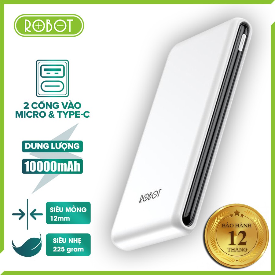 Điện Thoại & Phụ Kiện > Phụ kiện > Sạc dự phòng & Pin > Sạc dự phòng || [Bảo hành 1 đổi 1 mới] Pin sạc dự phòng ROBOT RT180 dung lượng 10000mAh Lithium Polymer, sạc tốc độ cao 2A, tặng cáp sạcCòn hàng
