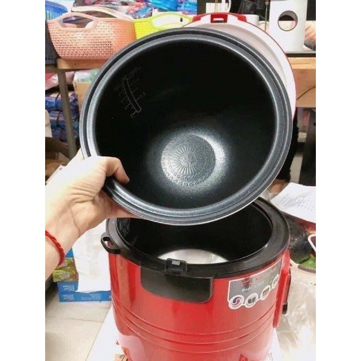 • Trong khi đó, vung nồi và đáy nồi làm từ nhựa cao cấp, chịu nhiệt siêu bền, chống bỏng khi di chuyển, an toàn cho người dùng.