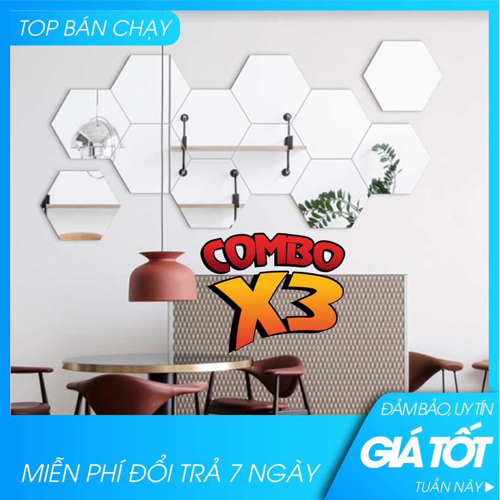 Nhà cửa & Đời sống > Trang trí nhà cửa > Gương || [ BẢO HÀNH 1 ĐỔI 1] Set 3 Bộ 12 miếng gương dán tường 3D hình lục giác 11x11Còn hàng