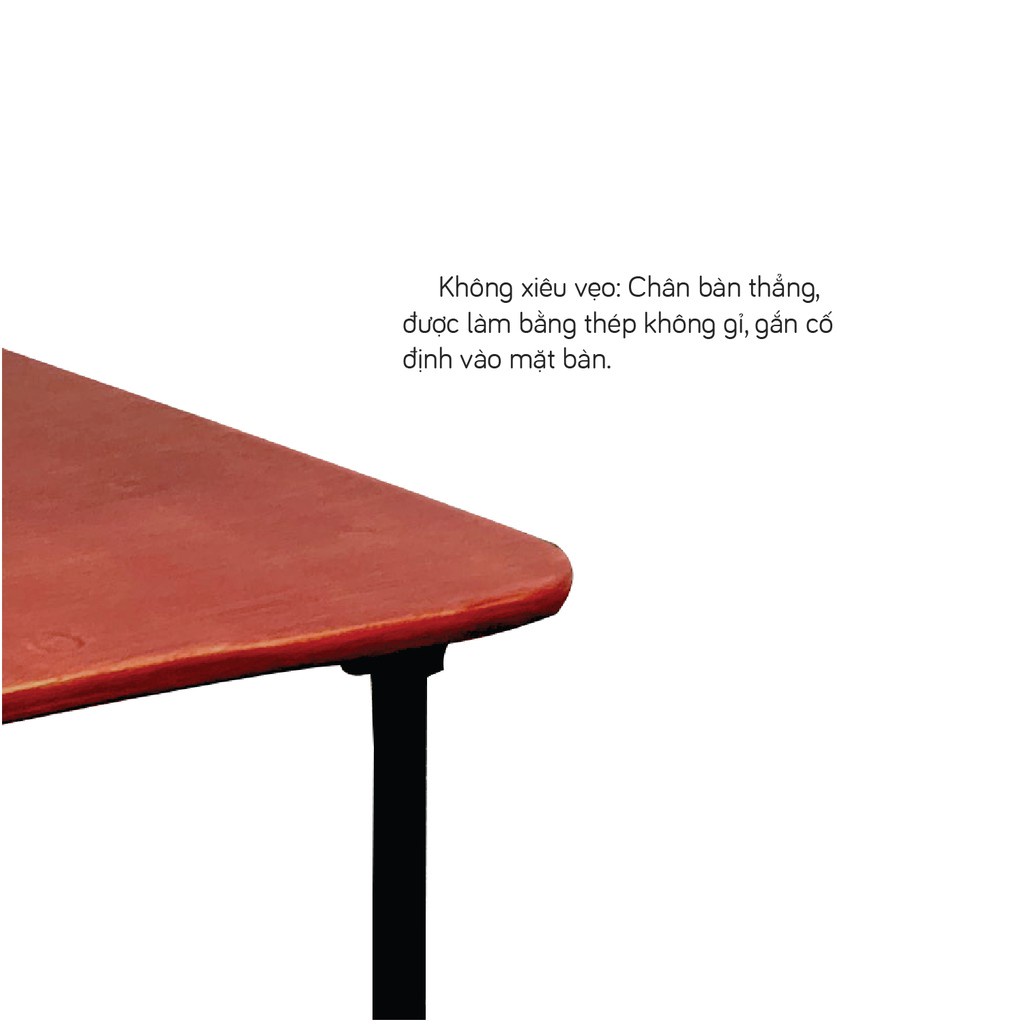 - Chất liệu mặt bàn: bàn gấp học sinh được làm bằng gỗ tự nhiên kết cấu 3 lớp tăng tuổi thọ của bàn học, chân sắt vững chắc