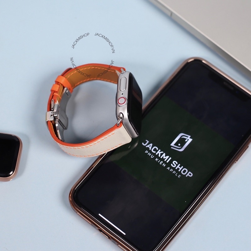 Giới thiệu [BẢO HÀNH 1 NĂM] Dây Da BÊ SWIFT may tay thủ công màu Kem chỉ Cam khóa Bướm cho Apple Watch series 1/2/3/4/5/6/7