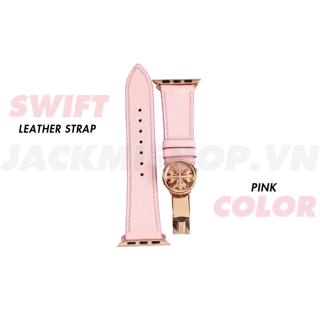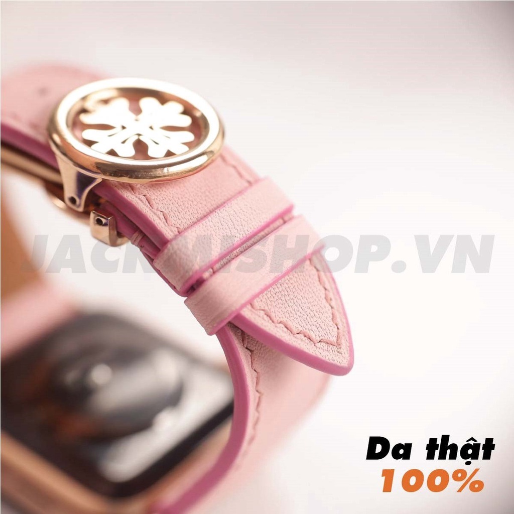 [BẢO HÀNH 1 NĂM] Dây Da BÊ SWIFT Màu Hồng Khoá Patek cho Apple Watch series 1/2/3/4/5/6/7