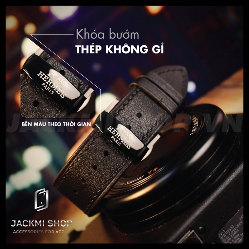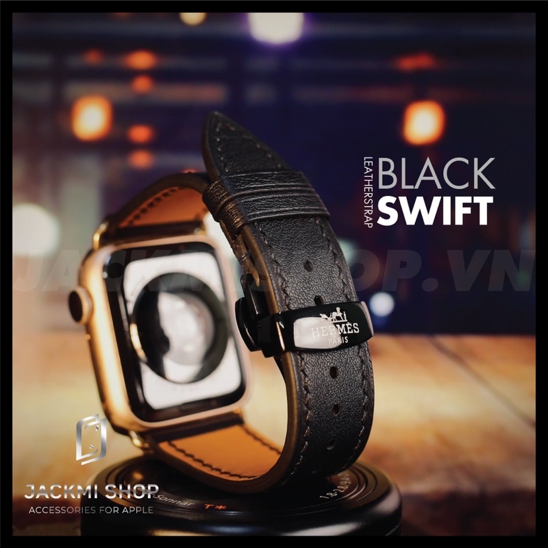 Giới thiệu [BẢO HÀNH 1 NĂM] Dây Da BÊ SWIFT may tay thủ công màu Đen khoá Bướm cho Apple Watch series 1/2/3/4/5/6/7