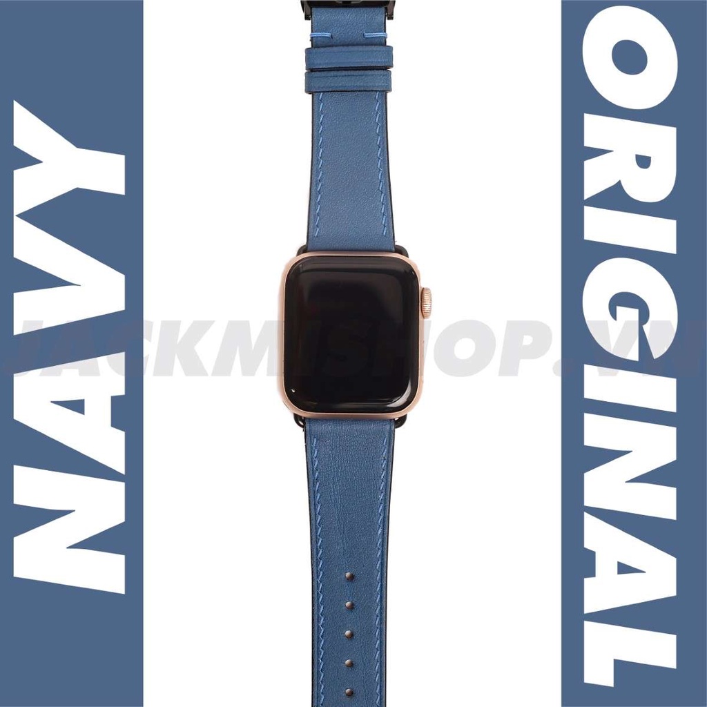 Giới thiệu [BẢO HÀNH 1 NĂM] Dây Da BÊ SWIFT may tay thủ công màu Xanh Navy khóa Bướm cho Apple Watch series 1/2/3/4/5/6/7