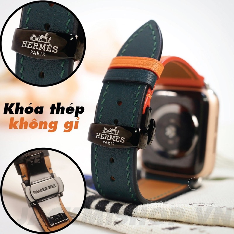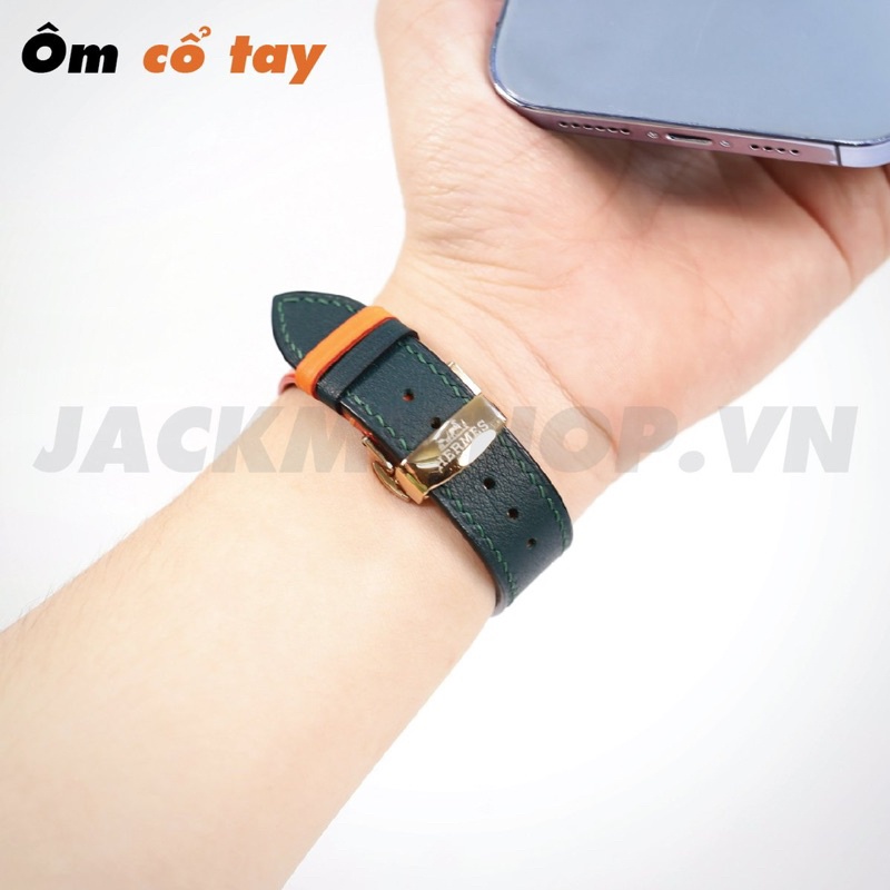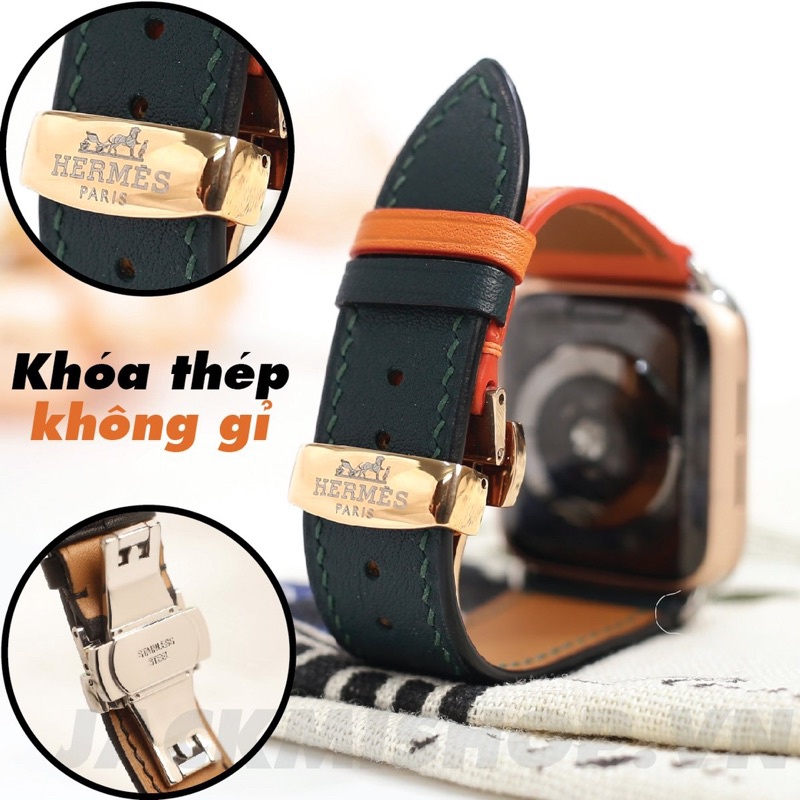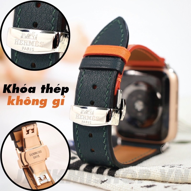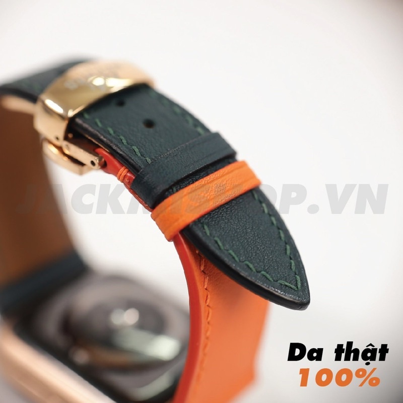 [BẢO HÀNH 1 NĂM] Dây Da BÊ SWIFT may tay thủ công màu Cam/Xanh Midnight khóa bướm cho Apple Watch series 1/2/3/4/5/6/7