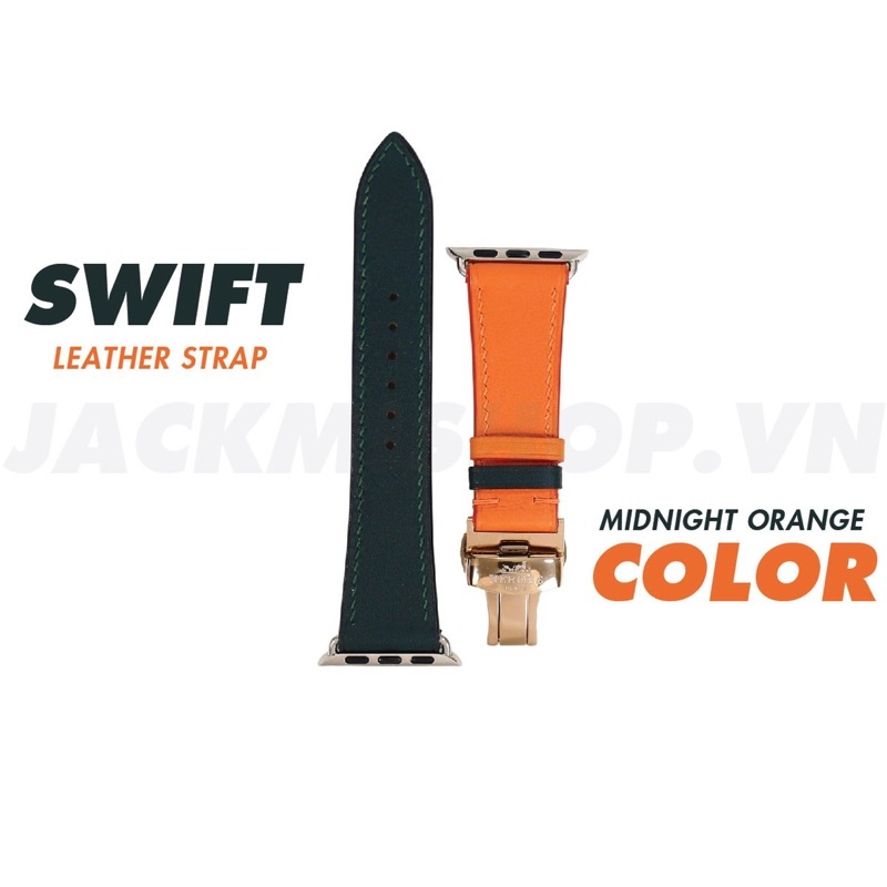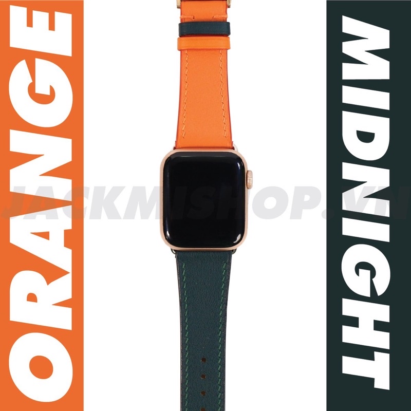 Giới thiệu [BẢO HÀNH 1 NĂM] Dây Da BÊ SWIFT may tay thủ công màu Cam/Xanh Midnight khóa bướm cho Apple Watch series 1/2/3/4/5/6/7